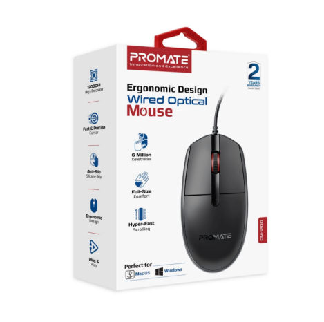 Promate CM-1200 3 Button USB Optical Mouse, Black